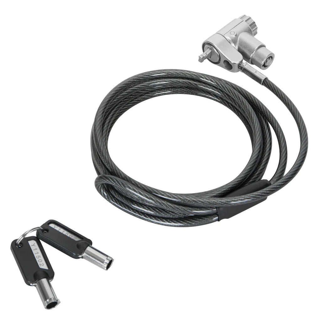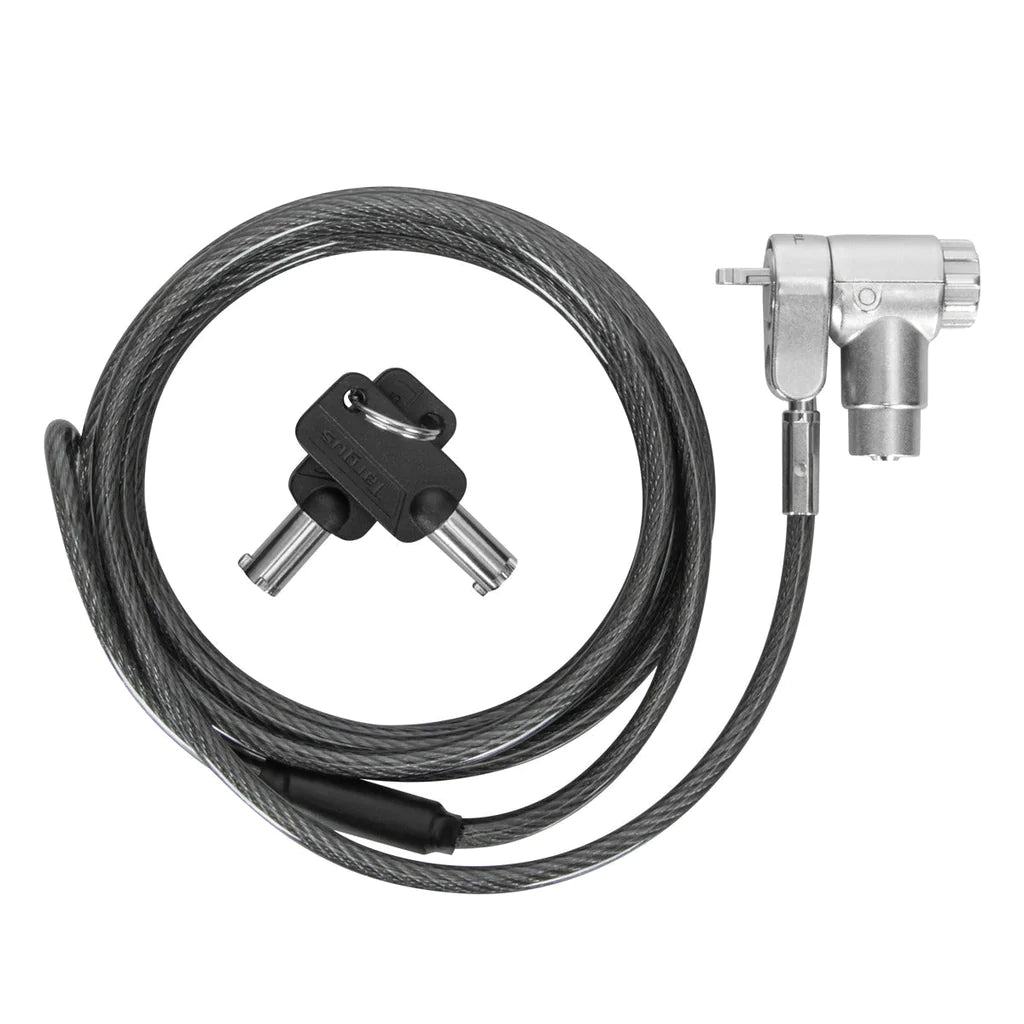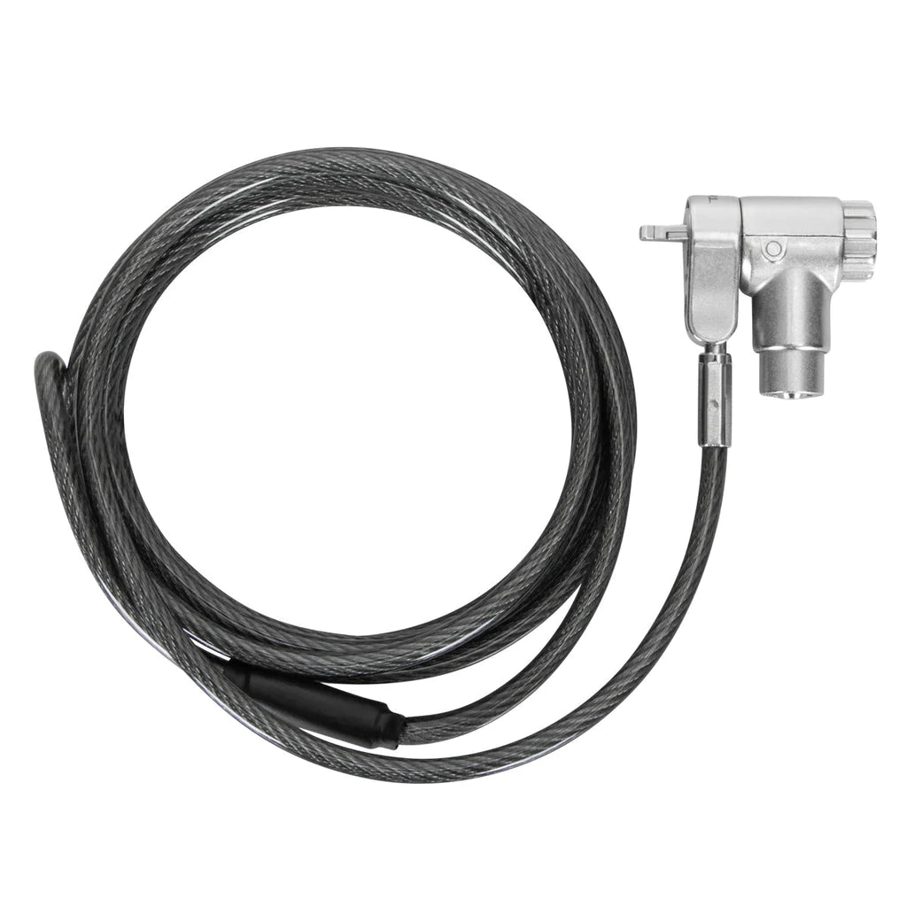 El cabezal de bloqueo adaptable de ajuste universal también significa que ya no tendrá que preocuparse de perder cabezales intercambiables, lo que resulta ideal para empresas modernas o profesionales con una amplia gama de dispositivos y equipos. El exclusivo cabezal de bloqueo adaptable con llave puede girar 360 grados, lo que facilita su uso, mientras que su cable de 2 m de acero galvanizado y con funda lo hace resistente a los cortes y al óxido, pero flexible para una instalación sencilla.