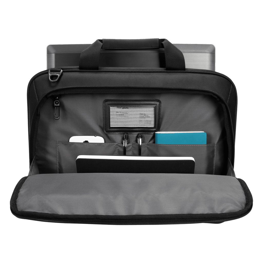 The Targus CityLite Briefcase helps to protect laptops with screens up to 15.6”. Perfect for the avid traveler seeking a functional yet lightweight case in a modern design, the CityLite case provides an easy-access front compartment for pens, a smartphone, and other accessories. An expandable file section safely stores documents.