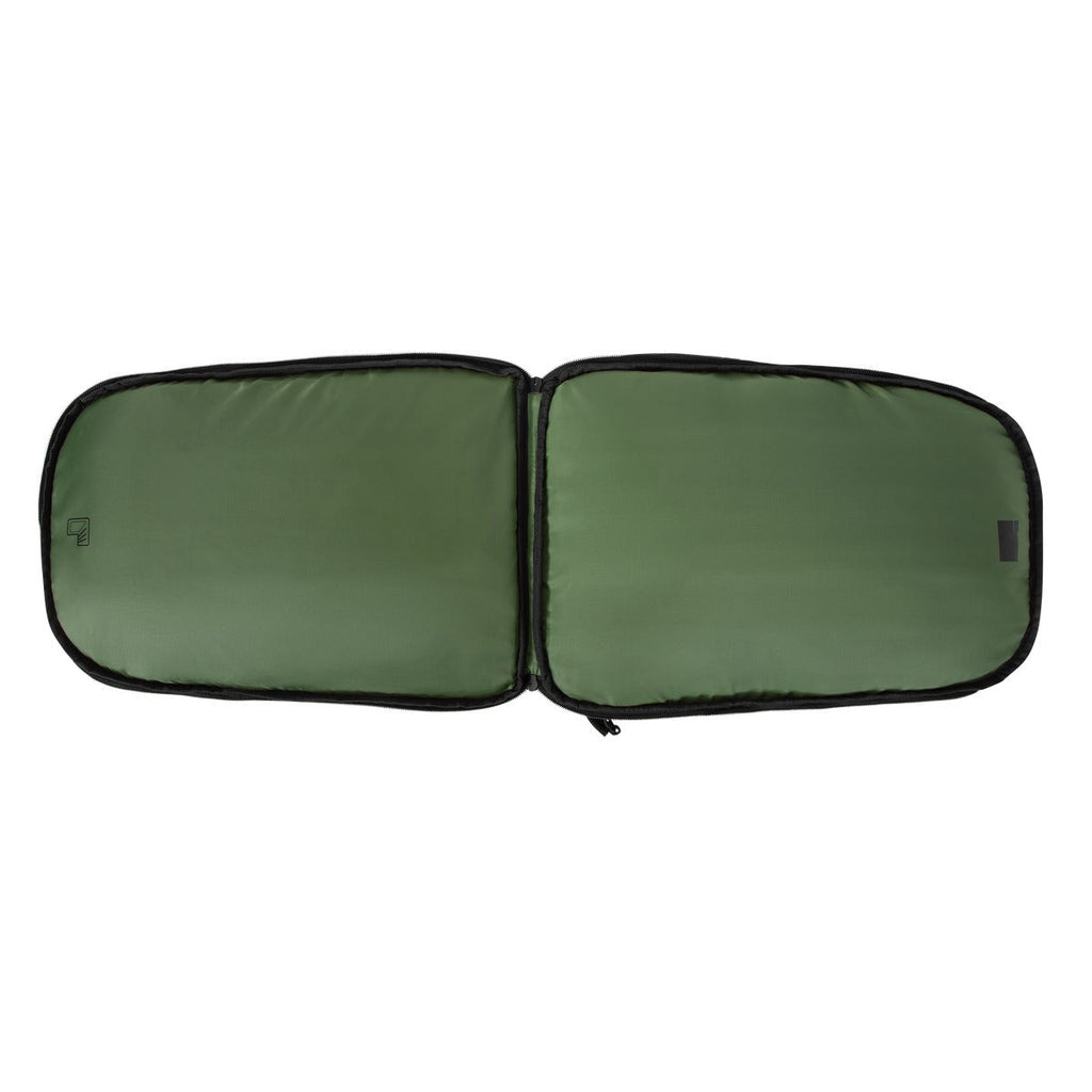 A colorful green interior lightens the case, making items stored inside more visible. Both sleek and sporty, the Spruce line offers a durable option with carefully selected materials to minimize your carbon footprint.