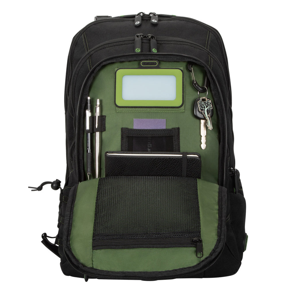 A perfect blend of style and storage, the Spruce™ EcoSmart® Checkpoint-Friendly Backpack is designed to protect laptops up to 15.6" in size with its SafePort® Sling drop protection. Eco-friendly to its core, it’s constructed from 21 recycled plastic bottles and features nickel-free hardware and recyclable plastic components.